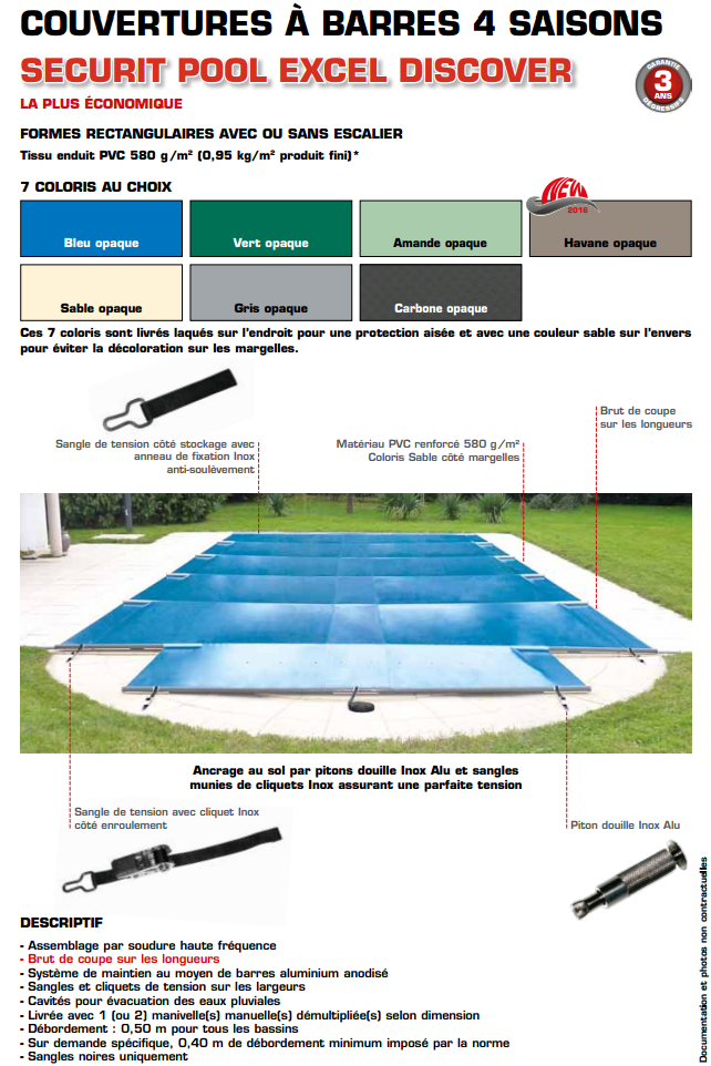 Securit Pool Excel Discover est une couverture à barres à prix discount. En cas de neige ou vent fort la couverture doit être enroulée.