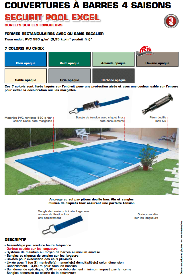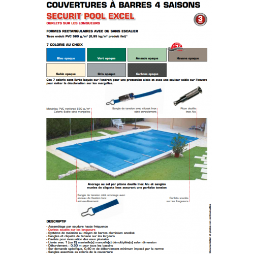 Securit Pool Excel est une couverture à barres vendu à prix discount : En cas de neige abondante ou vent violent la couverture doit être enroulée.