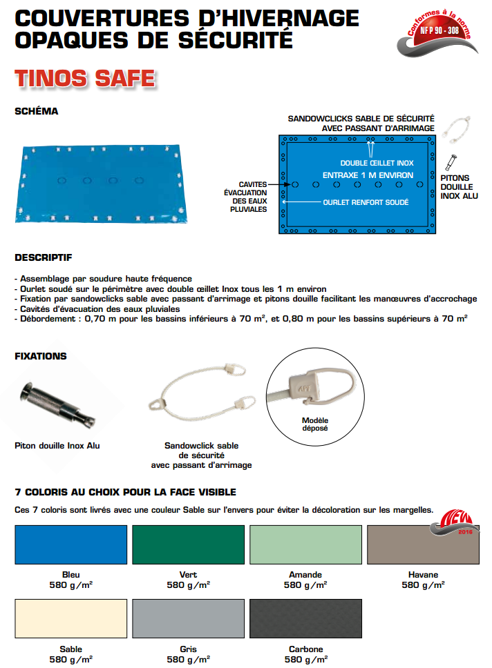 Détails de fabrication de la couverture d'hivernage de sécurité TINOS SAFE