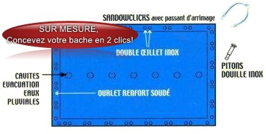 - Ourlets soudés sur le périmétre avec double oeillets inox tous les 1m environ