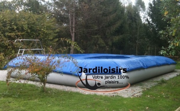 Bâche d'hiver Zodiac pour piscine Zodiac Original™ Hippo 65, hors-sol ou semi-enterrée, en toile enduite PVC coloris bleu avec boudins périphériques à remplir d'eau.