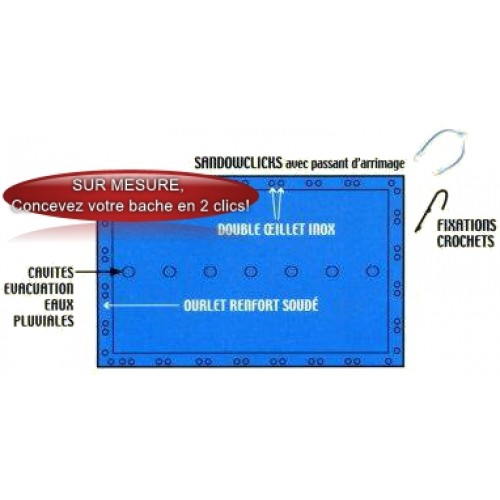- Ourlets soudés sur le périmétre avec double oeillets inox tous les 1m environ