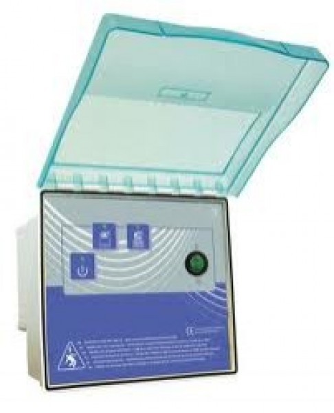 Coffret de régulation de niveau des piscines à débordement à relais pour bac tampon, livré avec 5 sondes, 1 électrovanne 1" et 1 filtre à tamis. Remplissage automatique avec sécurité manque d'eau.