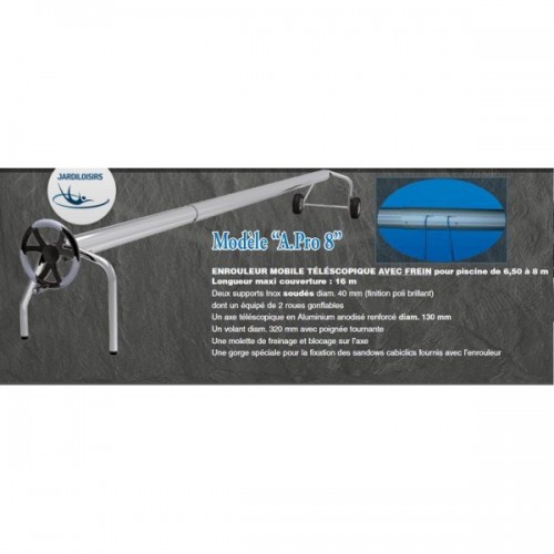 Enrouleur mobile téléscopique Pro avec frein pour des piscines jusqu'a 8 mètres de large