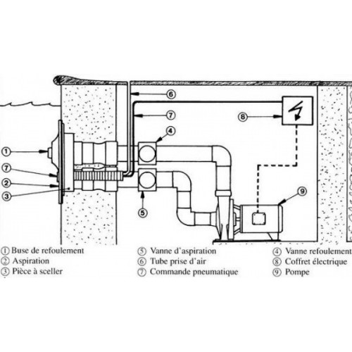Muni d'une commande pneumatique sur la façade, et d'une télécommande pour les NCC New Jet Vag et Lum Jet Vag, il peut être mis en fonctionnement à tout moment, de l'intérieur du bassin ou à distance. Sa buse de refoulement est orientable et règlable en débit d'air et d'eau par simple rotation.