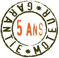 Moteur résiné garantie 5 ans, accessoires garantie 2 ans