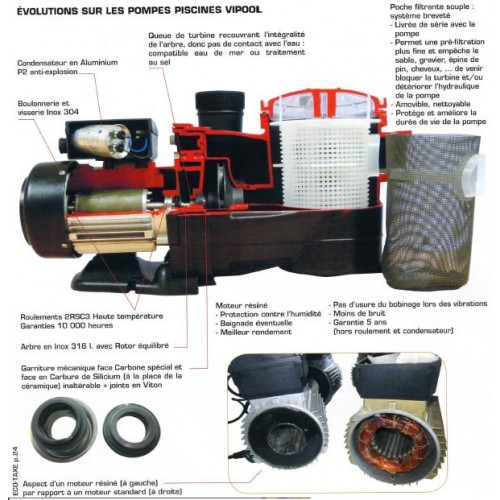 Pompe Vipool MJB 6m3/h - 1/2cv, est une pompe de piscine auto-amorçante au rendement hydraulique exceptionnel et ultra silencieuse de marque française.