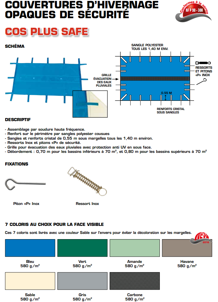 Détails de fabrication de la couverture d'hivernage de sécurité COS PLUS SAFE