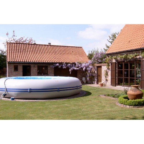 Zodiac Winky 5 + (120), une des piscines Zodiac rondes de taille intermédiaire, en PVC de la gamme Zodiac Original (4,70 m intérieur bassin - 24 m3 - 1,10/1,15 m ligne d'eau), est issue des bureaux d'études Zodiac (associant la matière dynalon et l'assemblage par thermobandage), après des années d'expérience et de succès du fameux bateau Zodiac ; une fabrication 100% française.